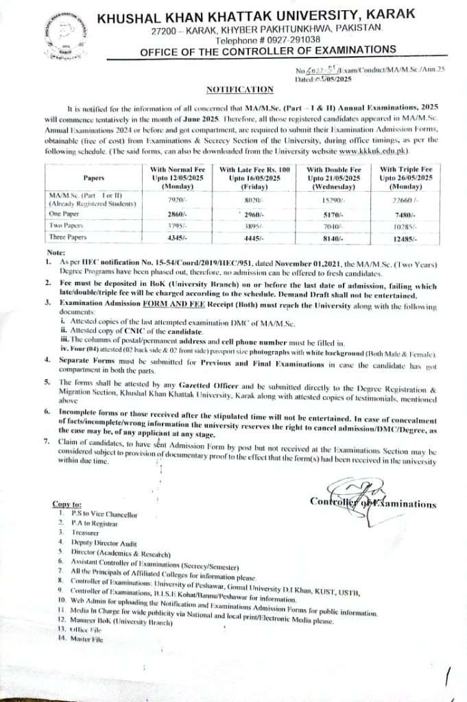 Notification of Admission MA/M.Sc (Part I & II) Annual Examination, 2025. Leave a Comment / By webadmin / May 7, 2025